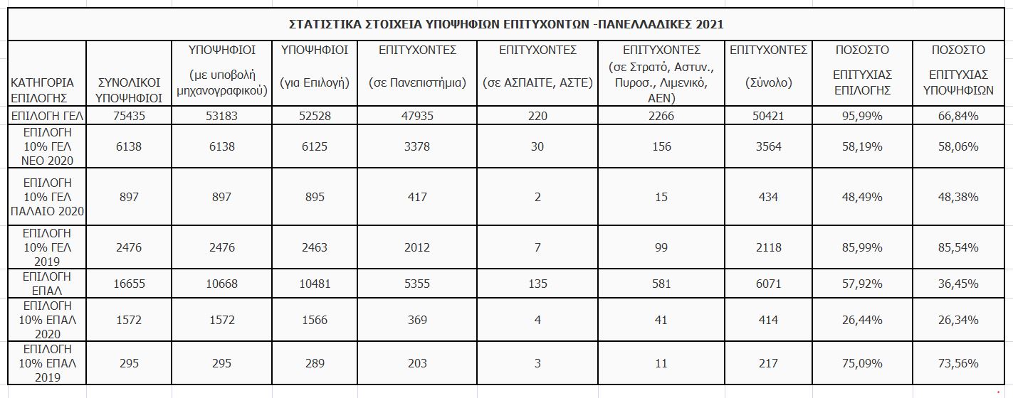 Πανελλαδικές 2021: Αποτελέσματα εισαγωγής και στατιστικά