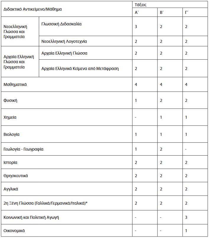 Τροποποίηση ωρολογίων προγραμμάτων μαθημάτων Ημερησίων Γυμνασίων, Καλλιτεχνικών και Μουσικών Γυμνασίων Μετά την εισαγωγή του μαθήματος «Οικονομικά»