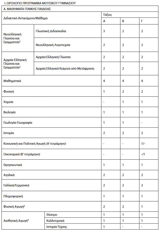Τροποποιούμε την υπό στοιχεία 106689/Δ2/18-08-2020 υπουργική απόφαση «Ωρολόγιο Πρόγραμμα των μαθημάτων των Α’, Β’ και Γ’ τάξεων Μουσικού Γυμνασίου και των Α’, Β’ και Γ’ τάξεων Γενικού Μουσικού Λυκείου» (Β’ 3523) ως προς τα Μαθήματα Γενικής Παιδείας του υποκεφ. Α του Κεφ. I του ωρολογίου προγράμματος των μαθημάτων της Γ’ τάξης του Μουσικού Γυμνασίου, και συγκεκριμένα εισάγεται το Διδακτικό Αντικείμενο/Μάθημα «Οικονομικά», μετά το Διδακτικό Αντικείμενο/Μάθημα «Κοινωνική και Πολιτική Αγωγή», όπου το πρώτο θα διδάσκεται στο Β’ τετράμηνο για μία (1) ώρα εβδομαδιαίως και το δεύτερο θα διδάσκεται για μία (1) ώρα, εβδομαδιαίως στο Α’ τετράμηνο, και τα Μαθήματα Γενικής Παιδείας του υποκεφ. Α του Κεφ. I διαμορφώνεται ως εξής: